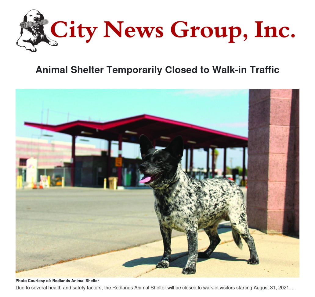 With ongoing staffing shortages at the Redlands Animal Shelter and the rise of the COVID-19 Delta variant, the City of Redlands and the Redlands Police Department remains committed to the health and safety of our residents and to the employees who provide service to them as well as the care and welfare of pets and wildlife.