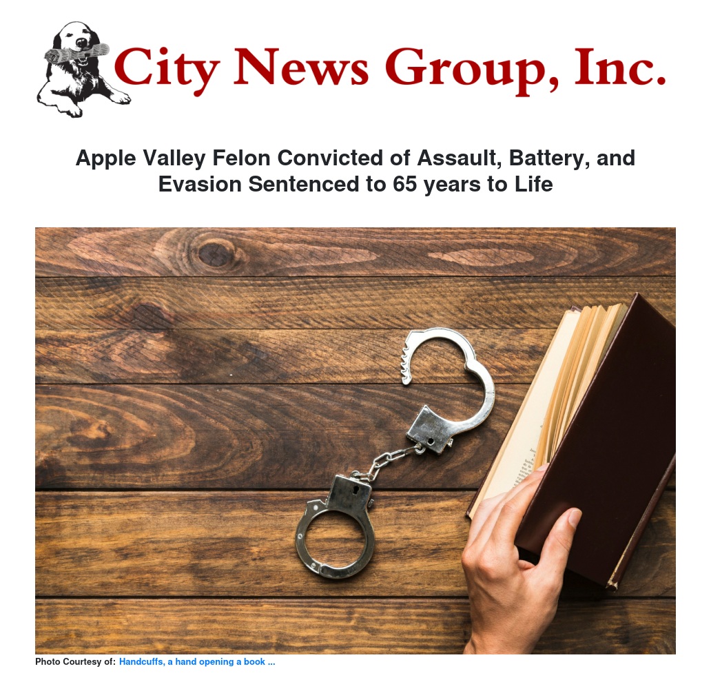 This case was investigated by the Apple Valley Police Department and prosecuted by Deputy District Attorney Jason Wilkinson of our Victorville Major Crimes Unit. The Honorable Judge Debra Harris presided over the trial.