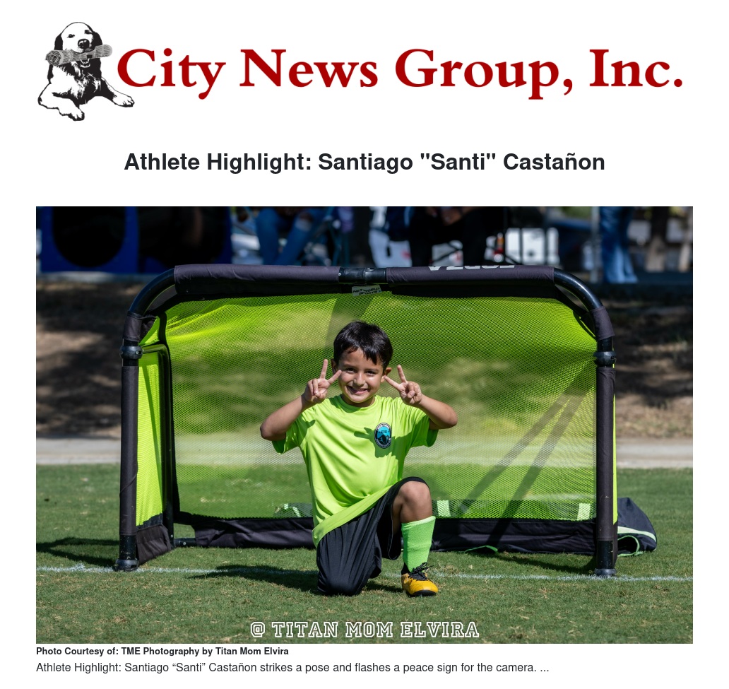 Athlete Highlight: Santiago "Santi" Castañon by Titan Mom Elvira - City News Group, Inc.