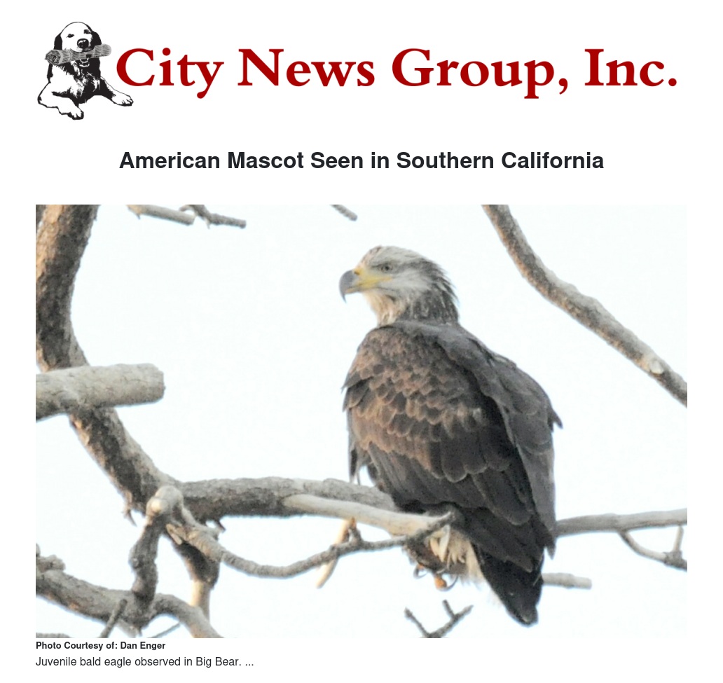 On Dec. 13, the first bald eagle count of the winter was conducted by local Federal and State biologists and volunteers around several lakes in Southern California.