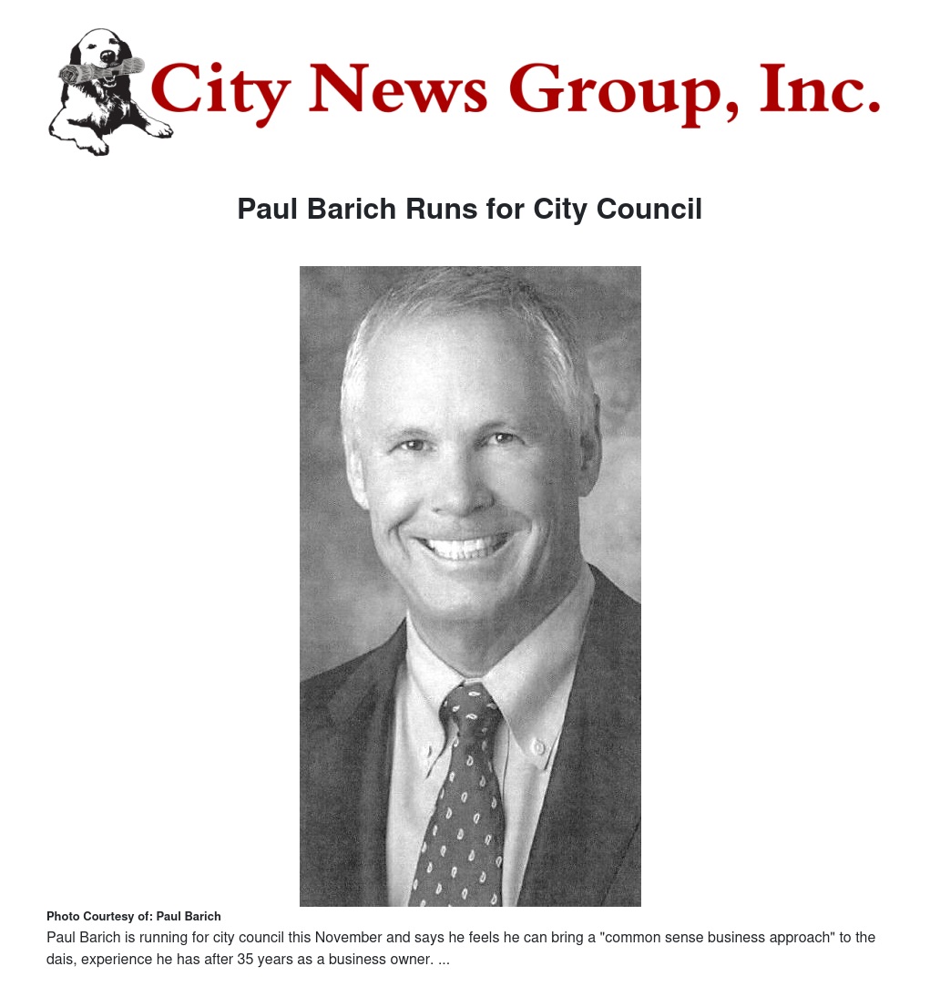 Paul Barich Runs for City Council