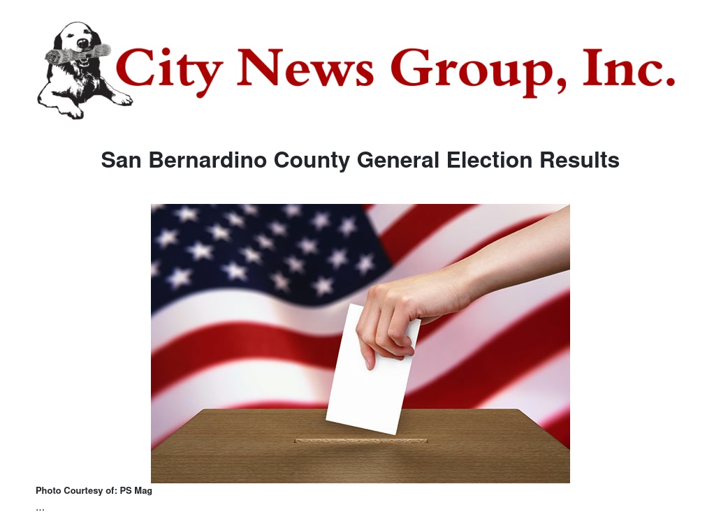 Click the link below for current General Election results as provided by the San Bernardino County Elections Office of the Registrar of Voters.