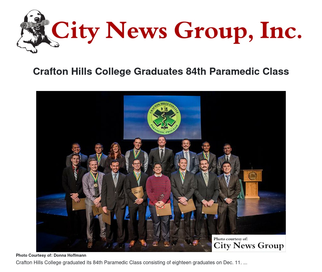 Crafton Hills College (CHC) graduated its 84th Paramedic Class on Friday, Dec. 11, 2015 in the Performing Arts Center.