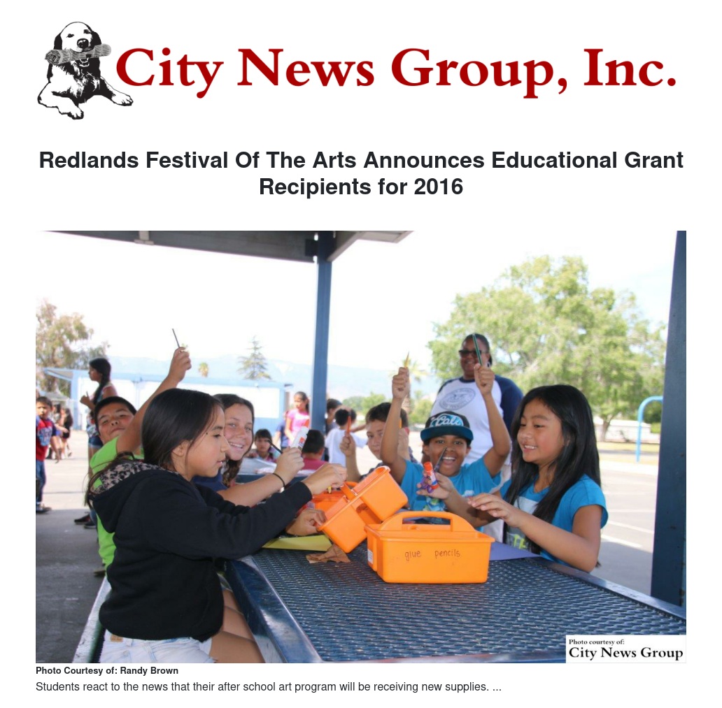 Redlands Festival Of The Arts Announces Educational Grant Recipients for 2016