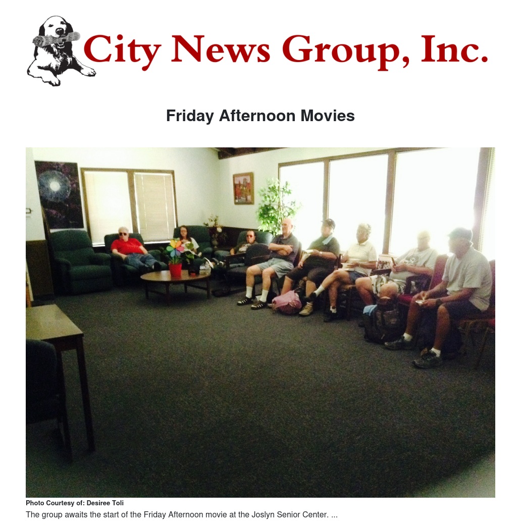 Every Friday at 2 p.m., The Joslyn Senior Center in Redlands offers movie and popcorn for all who wish to come and enjoy.