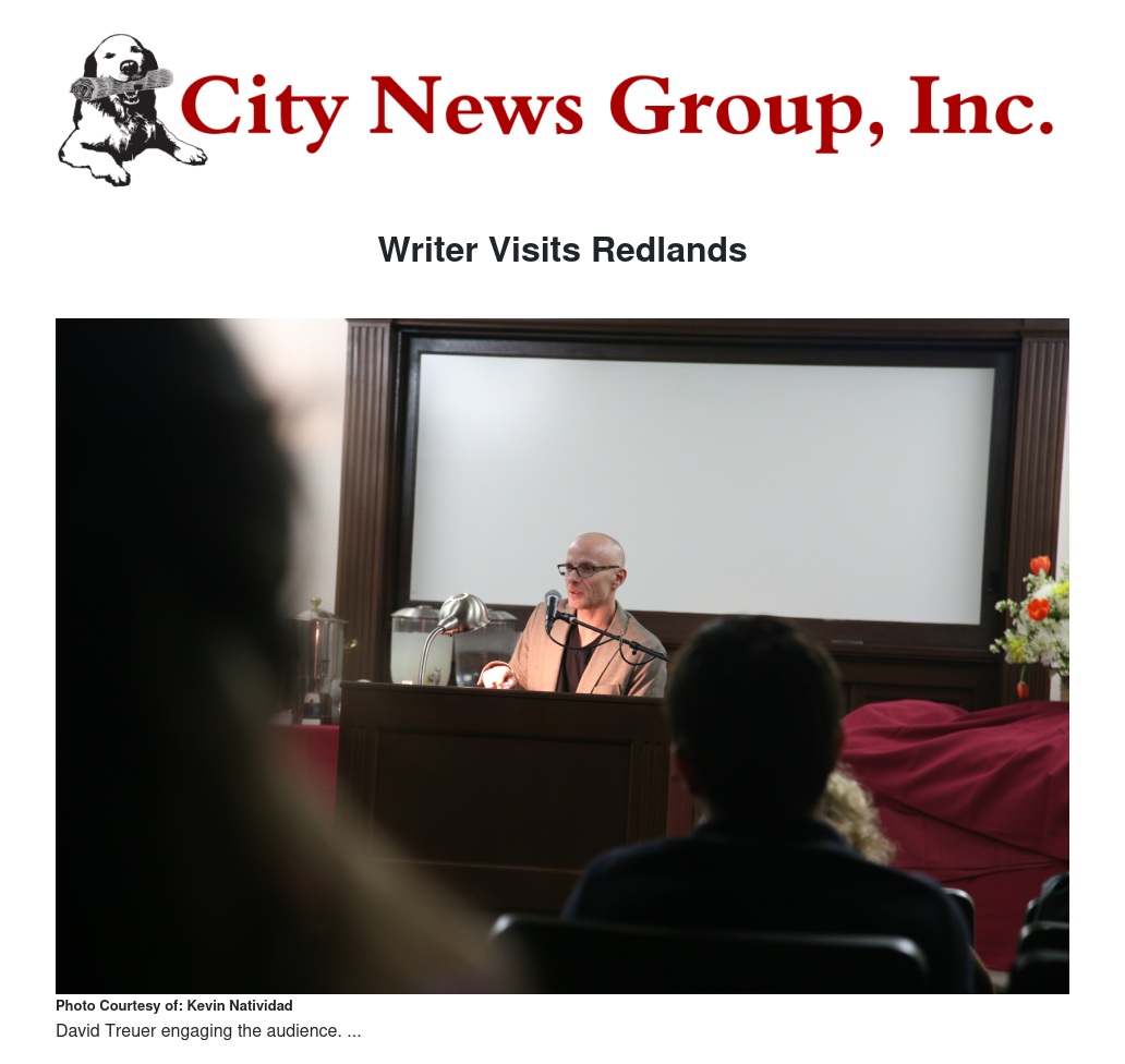 David Treuer, an award-winning Native American author, spoke at the University of Redlands last Thursday as part of a monthly event called the Visiting Writers Series.
