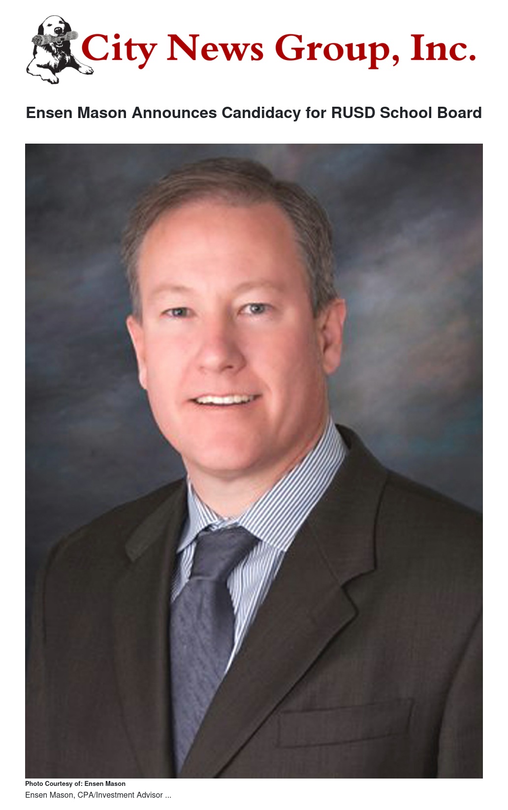 Redlands resident Ensen Mason announced his candidacy for a seat on the Redlands Unified School District (RUSD) school board.