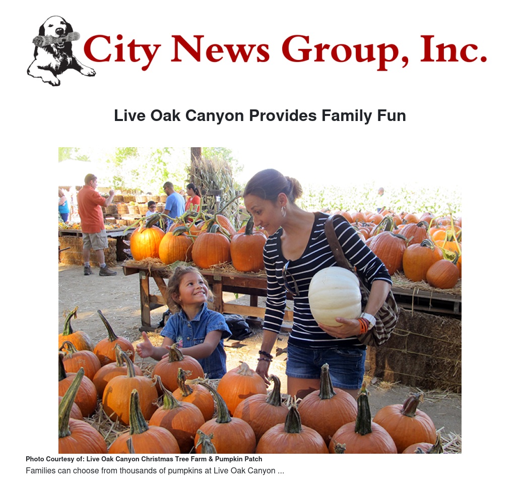 The Pumpkin Patch at Live Oak Canyon is open from Sept. 21 through Nov. 2, seven days a week.