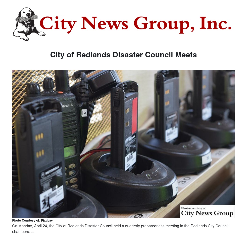 REDLANDS>> On Monday, April 24, the City of Redlands Disaster Council held a quarterly preparedness meeting in the Redlands City Council Chambers. The meeting was held from 4 p.m. to 5 p.m. and was open to the public.