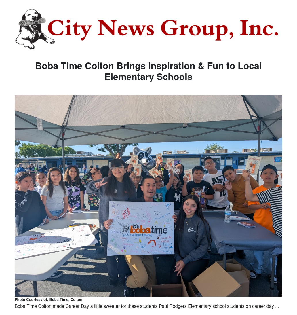 Boba Time Colton continues to look for ways to support local schools and community events. For any fundraiser opportunities or partnership inquiries, you can reach out directly at itsbobatimecolton@gmail.com.