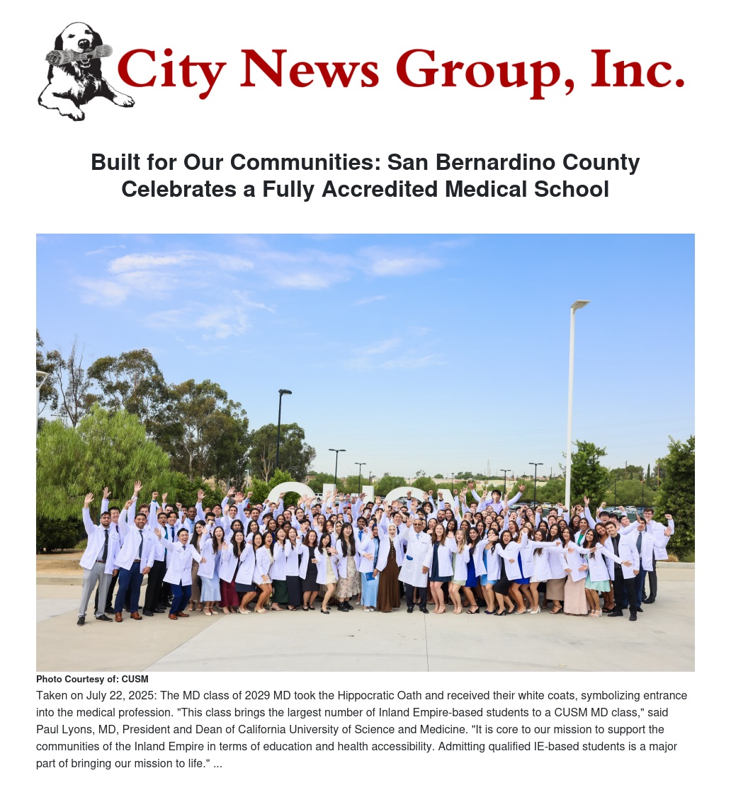 Built for Our Communities: San Bernardino County Celebrates a Fully Accredited Medical School by Cynthia Baker - City News Group, Inc.
