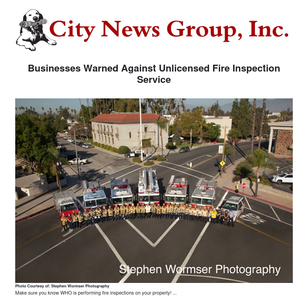 The Redlands Fire Department regularly conducts inspections of fire safety and suppression systems for businesses. The Fire Department offers the following information to protect business owners and help them identify legitimate Fire Department inspectors: