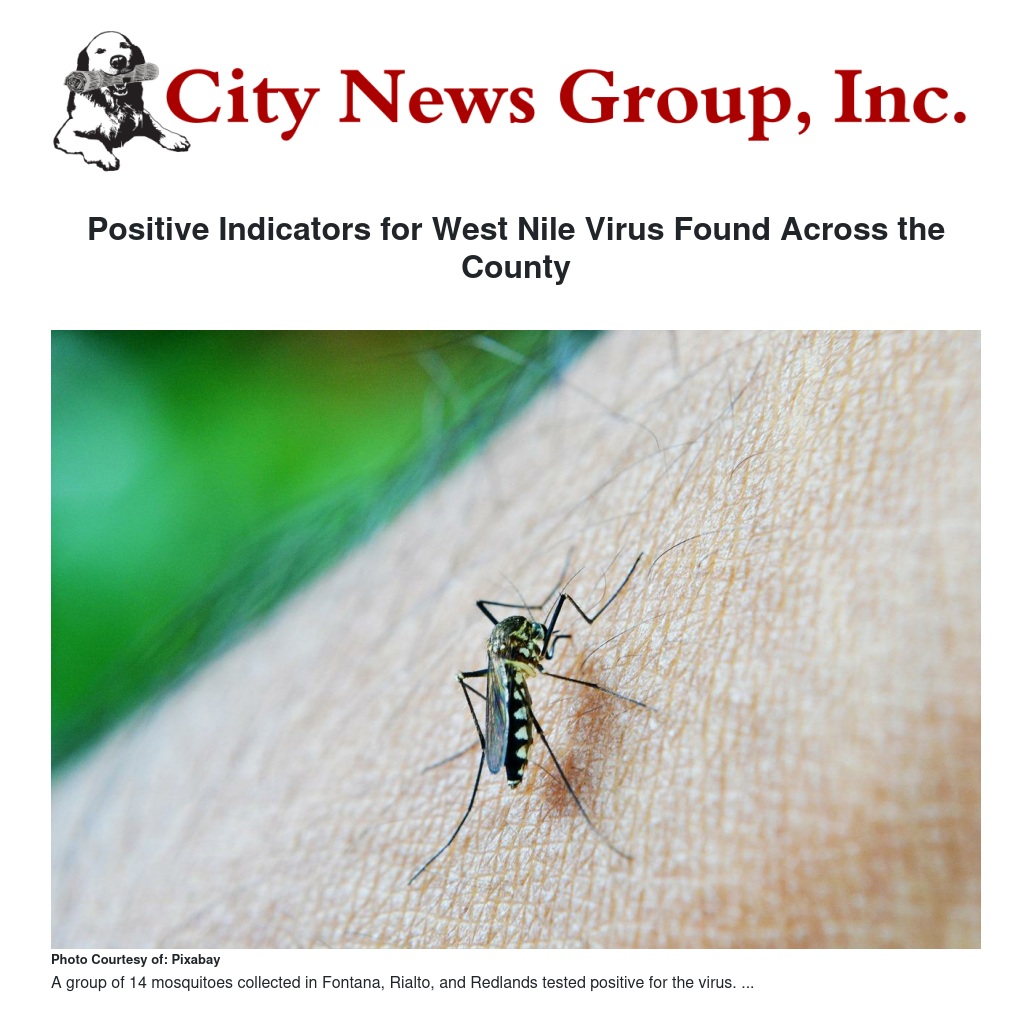Positive Indicators for West Nile Virus Found Across the County by Lana Cao - City News Group, Inc.
