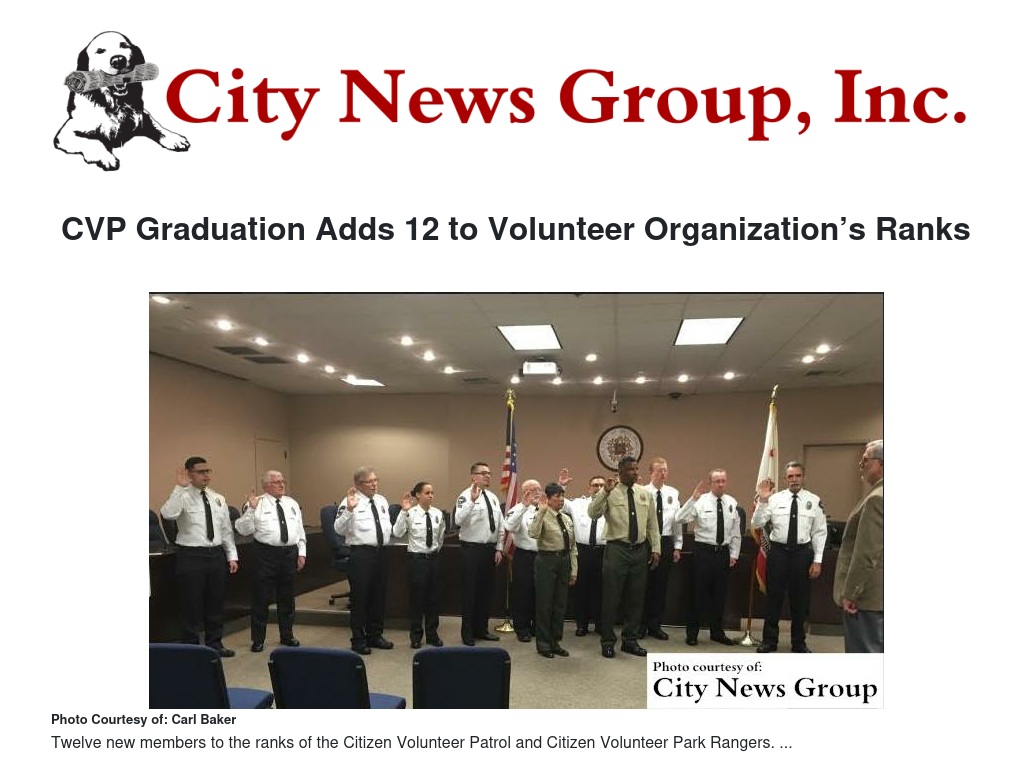 The Redlands Citizen Volunteer Patrol Academy held a graduation ceremony Wednesday, March 16, at Redlands City Hall adding 12 new members to the ranks of the Citizen Volunteer Patrol (CVP) and Citizen Volunteer Park Rangers.
