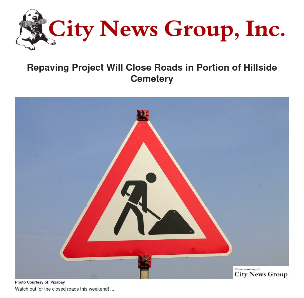 Repaving Project Will Close Roads in Portion of Hillside Cemetery