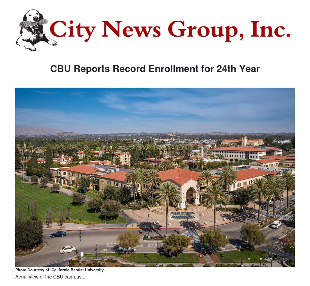 CBU Reports Record Enrollment for 24th Year by California Baptist University - City News Group, Inc.