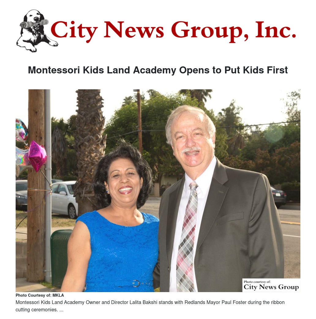 Helping children build a solid foundation and providing them with tools for education are the goals at Montessori Kids Land Academy, and that's what the child care business will continue to aim for after being officially welcomed to Redlands with a ribbon cutting ceremony at its center located at 31587 Alta Vista Drive in Redlands on June 4, representatives said.