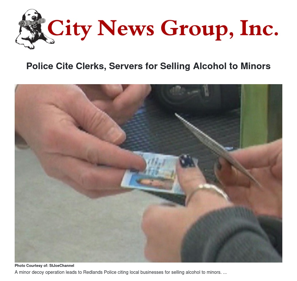 The Redlands Police Department conducts compliance checks to reduce the availability of alcohol to minors. Minor Decoy operations have been conducted by local law enforcement throughout the state since the 1980s. In 1994, the California Supreme Court ruled unanimously that use of underage decoys is a valid tool of law enforcement to ensure that licensees are complying with the law.