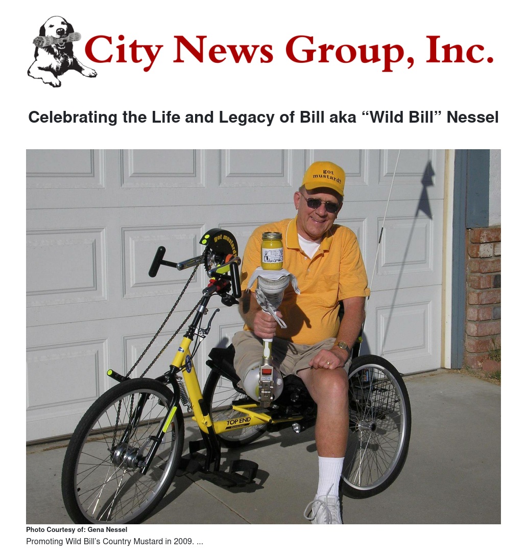 Many knew Bill as “The Mustard Man.” In his youth, Bill spent his summers on a farm in Wisconsin with his aunt and uncle who made mustard. His brother Bud continued making the mustard and when Bill became an amputee he received the old family recipe and started making the mustard again. He would say of it, “The mustard has bite but it doesn’t leave teeth marks.” Mustard was always a strong conversation starter for him, and he had many stories of the mustard lovers he met.