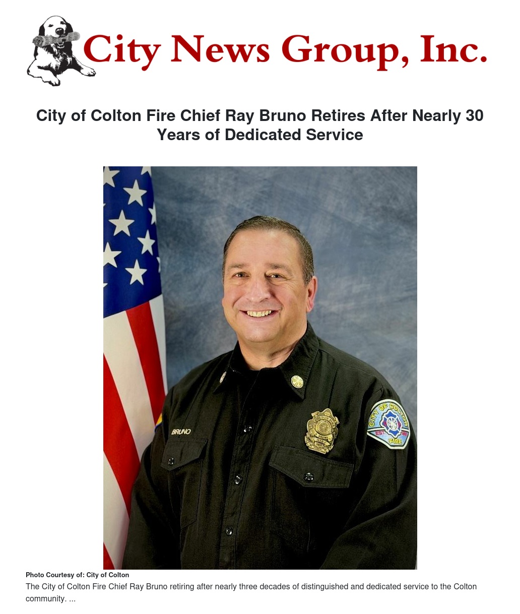 City of Colton Fire Chief Ray Bruno Retires After Nearly 30 Years of Dedicated Service by William Cortez - City News Group, Inc.