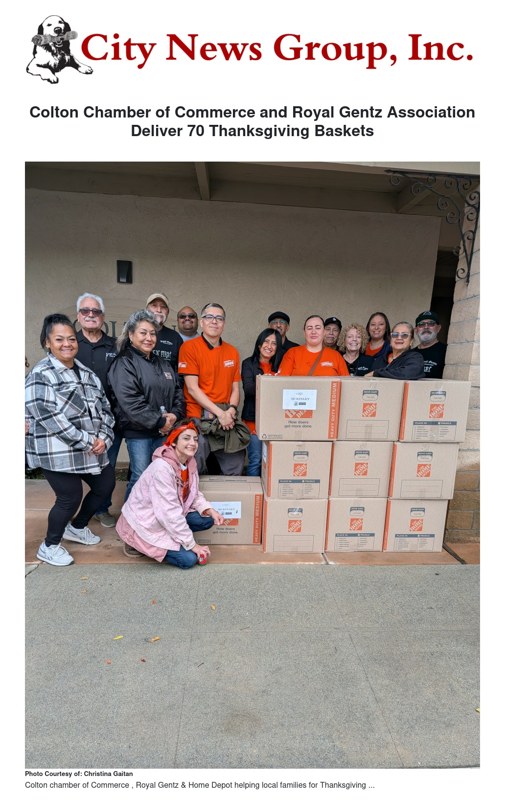 Colton Chamber of Commerce and Royal Gentz Association Deliver 70 Thanksgiving Baskets by Christina Gaitan - City News Group, Inc.
