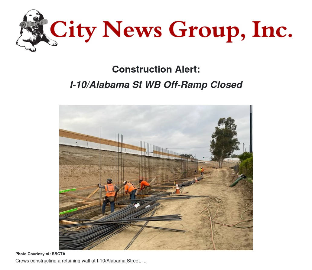 The I-10/Alabama Street westbound (WB) off-ramp will be closed Wednesday, February 23 at 10:00 p.m. through Thursday, February 24 at 6:00 a.m. Detour routes will be posted and include California Street.