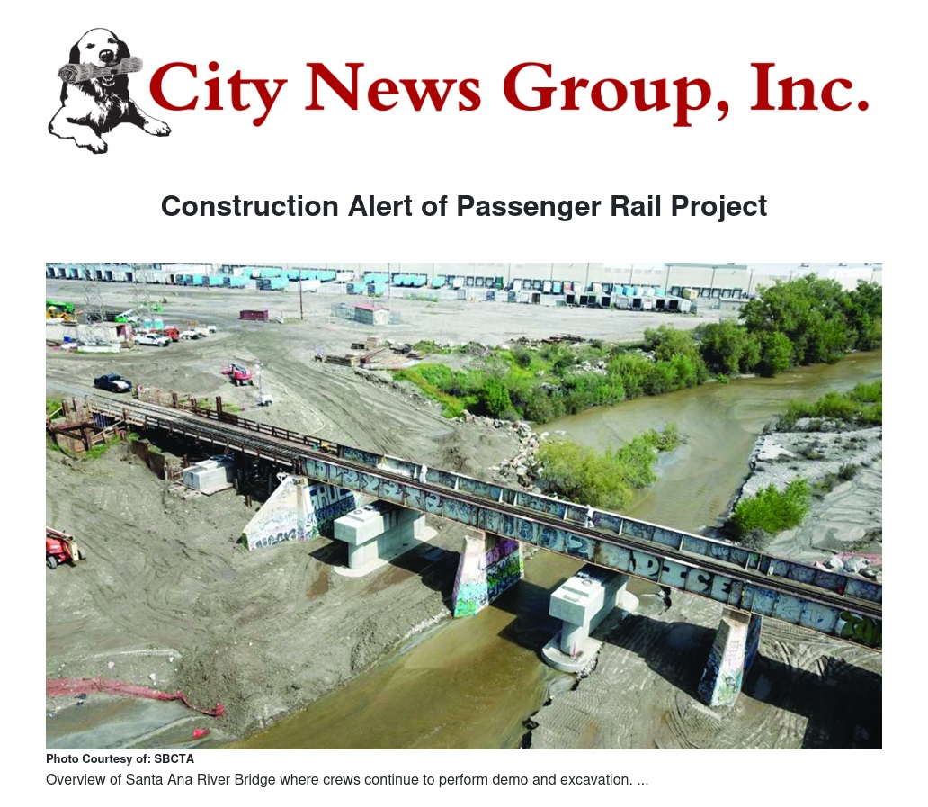 As the San Bernardino County Transportation Authority (SBCTA) continues construction of the Redlands Passenger Rail Project, crews have completed approximately 40% of the project with civil work completed at a few crossings and some of the bridge work nearing completion as well. The next phase of the project will have crews completing civil work and signal installation at each crossing as well as roadwork activities such as re-paving in and around the crossings. This work will require mostly alternating lane closures with the possibility of full closures.