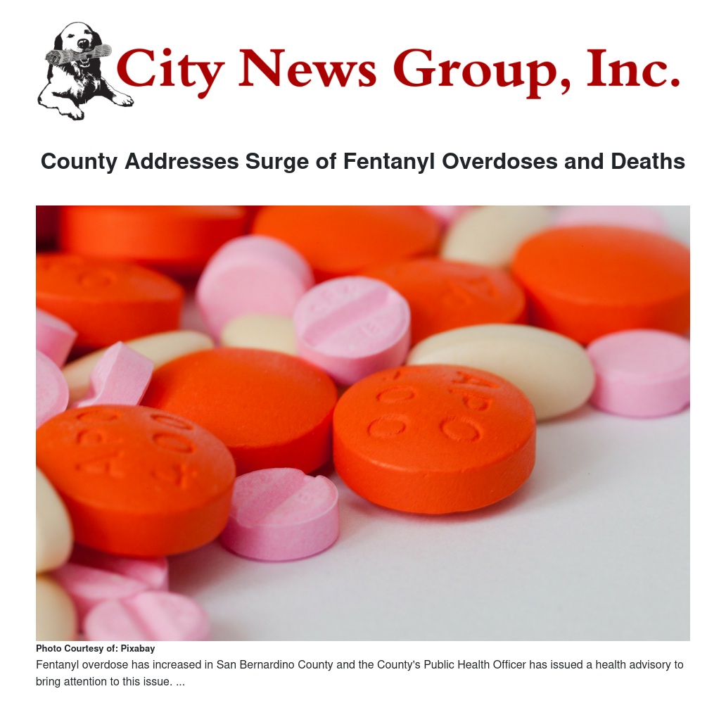 San Bernardino County’s Public Health Officer has issued a health advisory to bring attention to the dangers of fentanyl due to a marked increase in overdose deaths in the county. Health advisories are issued to raise public awareness when a significant threat to public health is identified, along with recommendations to eliminate or mitigate the risk.