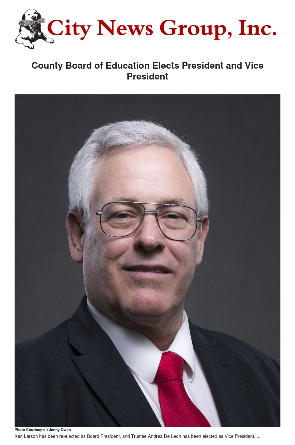 County Board of Education Elects President and Vice President by Jenny Owen - City News Group, Inc.