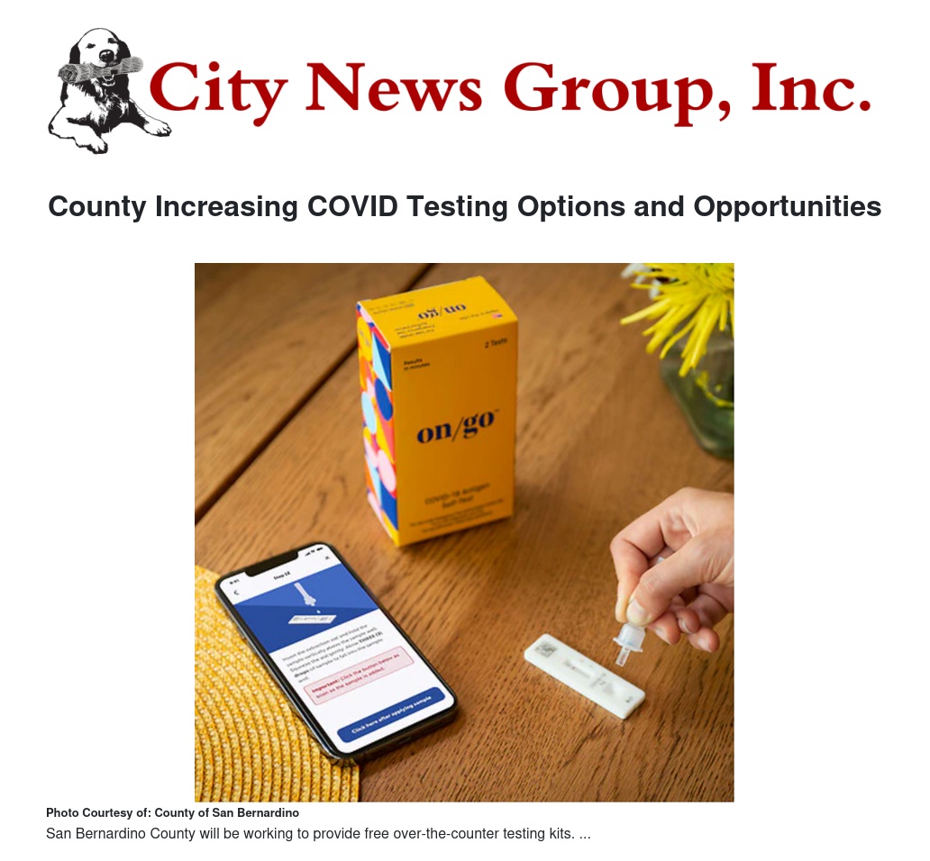 County Increasing COVID Testing Options and Opportunities by County of San Bernardino - City News Group, Inc.