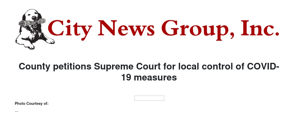 County petitions Supreme Court for local control of COVID-19 measures by David Wert - City News Group, Inc.