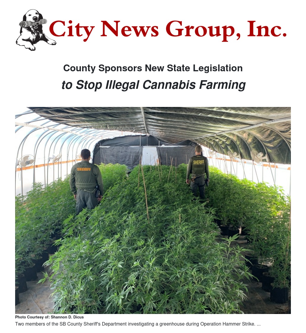 "I appreciate these legislators' efforts to give law enforcement practical and meaningful tools to address illegal marijuana cultivation," said San Bernardino County Sheriff Shannon Dicus. "I look forward to our continued collaboration as we work to address issues which affect the residents in our communities."