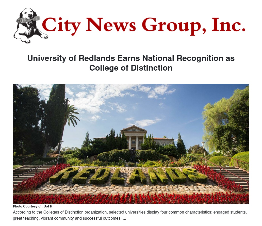 The University of Redlands is one of only 23 four-year California colleges and universities in the new Colleges of Distinction Guidebook. The University of Redlands entry can also be viewed at http://collegesofdistinction.com/school/university-of-redlands