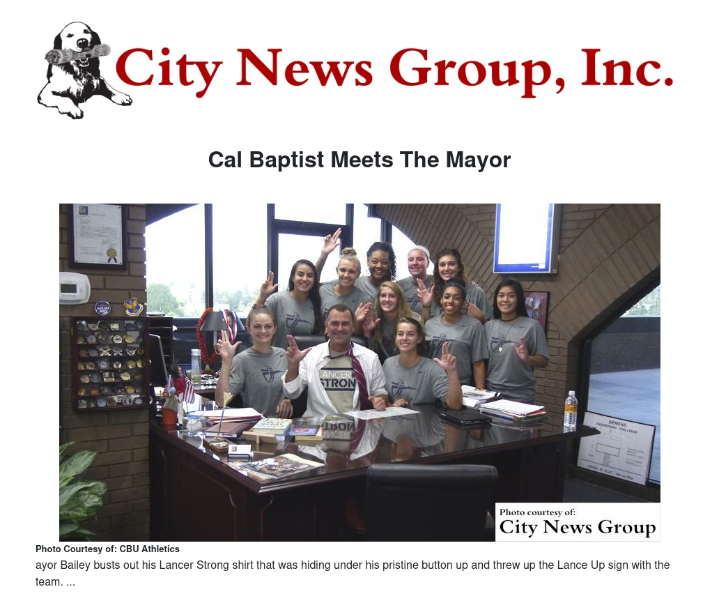 Mayor Bailey showed his excitement for the Lancers by sending them a video before the NCAA Division II Championship game where he gave them an invitation to visit him when they got back. Friday afternoon, CBU followed up on that invitation as Mayor Bailey took time out of his busy schedule to chat with the Lancers.