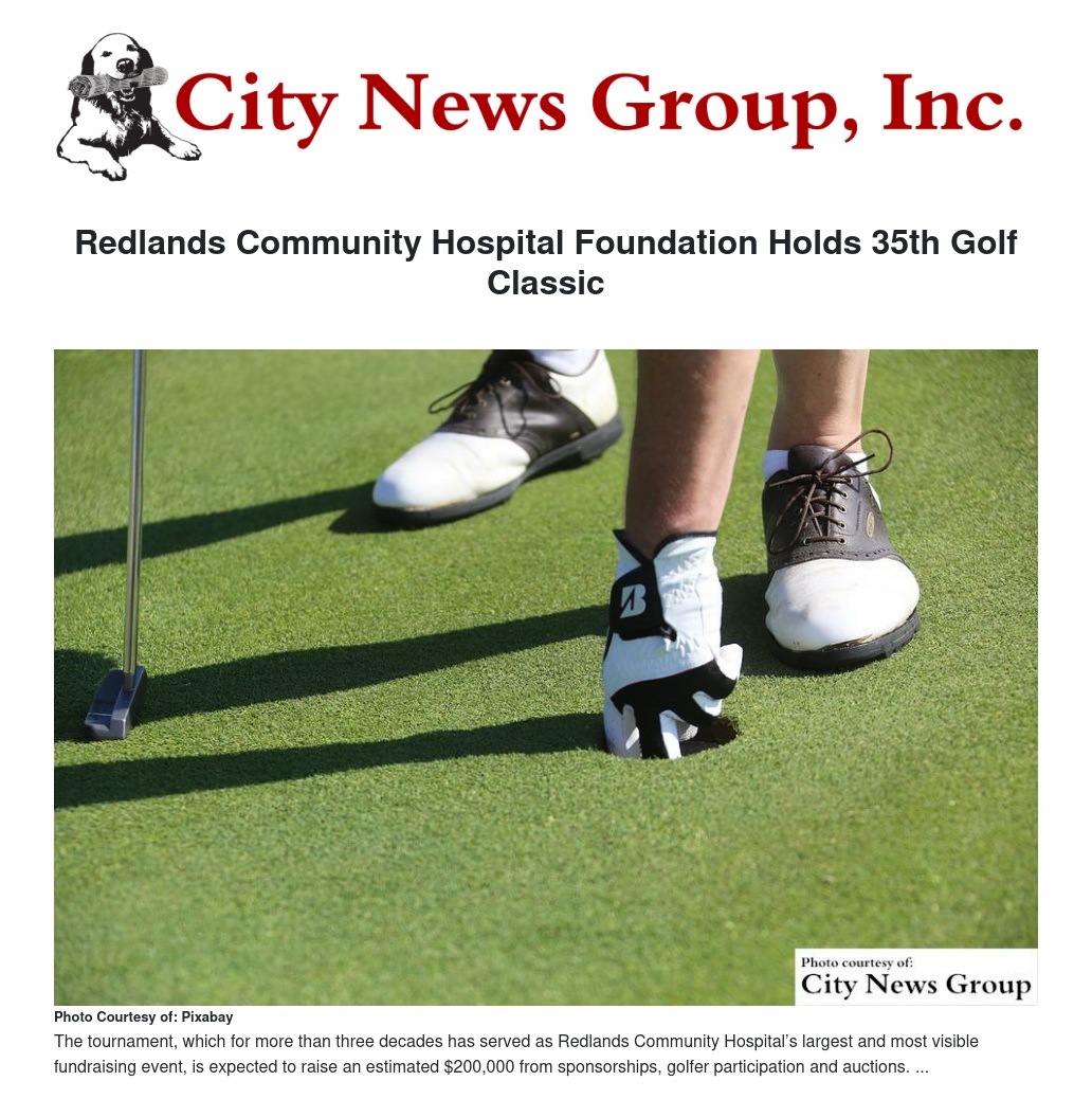 The tournament, which for more than three decades has served as Redlands Community Hospital’s largest and most visible fundraising event, is expected to raise an estimated $200,000 from sponsorships, golfer participation and auctions, with proceeds going to support expansion and renovation of the hospital’s growing emergency department. The tournament will be managed from start to finish by more than 80 volunteers from the hospital, the country club and the community.