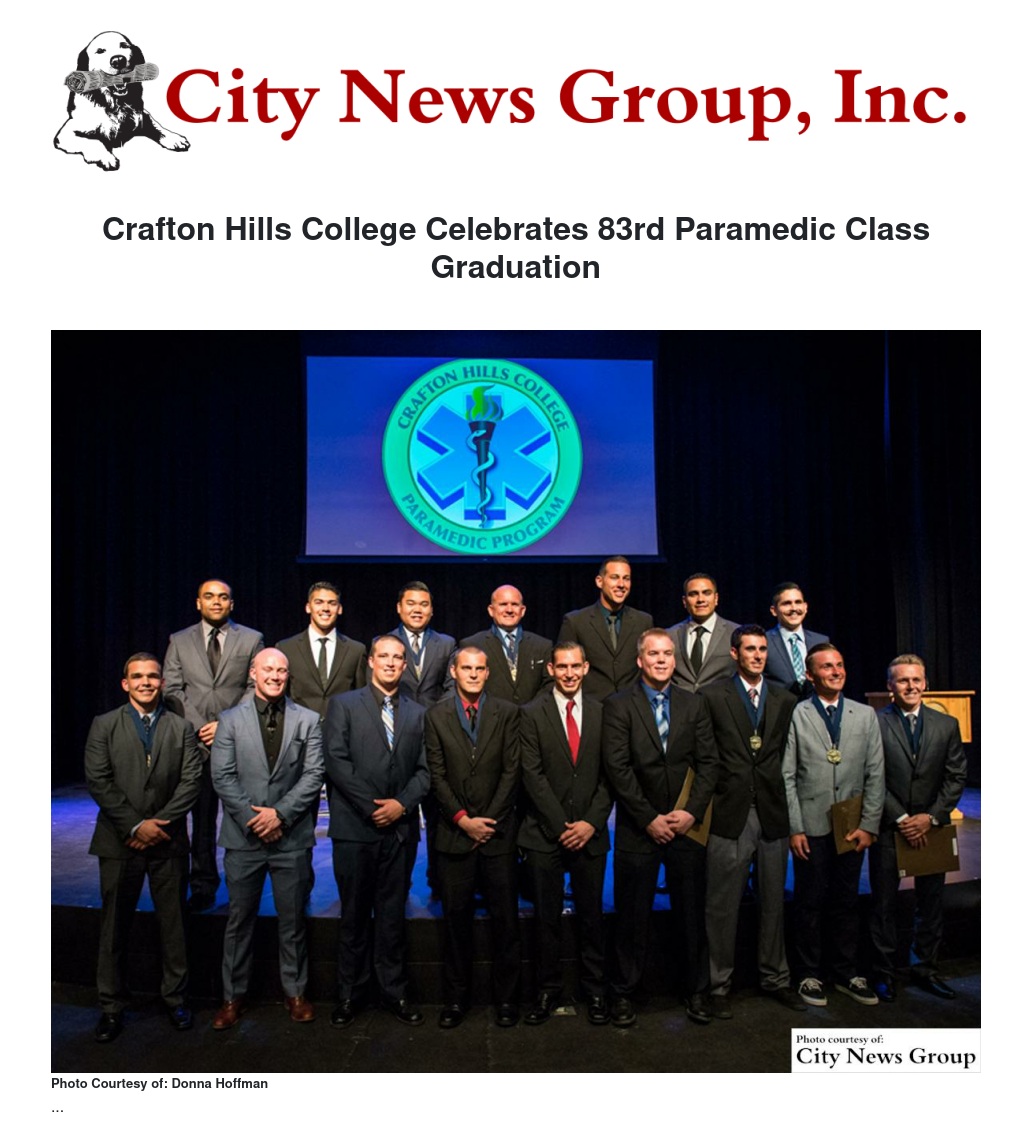 Crafton Hills College (CHC) graduated its 83rd Paramedic Class on Thursday, July 9 at 6 p.m. in the Performing Arts Center.