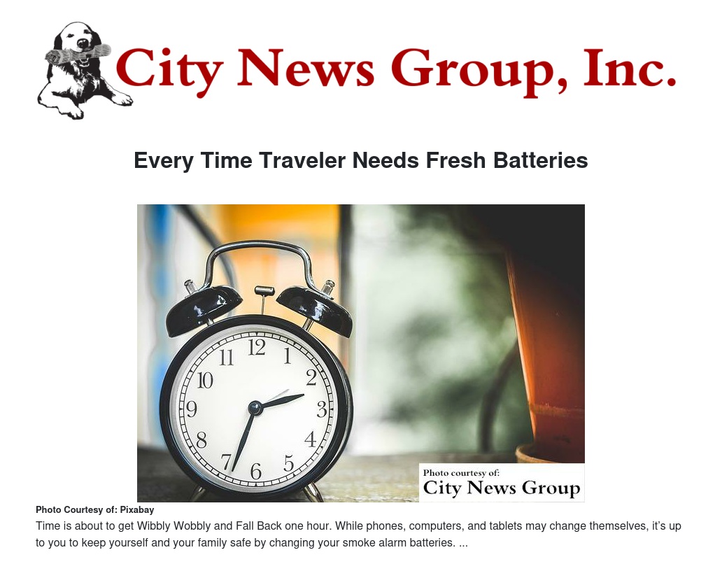 Sunday, November 1 is Daylight Savings Time. Time is about to get Wibbly Wobbly and Fall Back one hour. While phones, computers, and tablets may change themselves, it’s up to you to keep yourself and your family safe by changing your smoke alarm batteries.