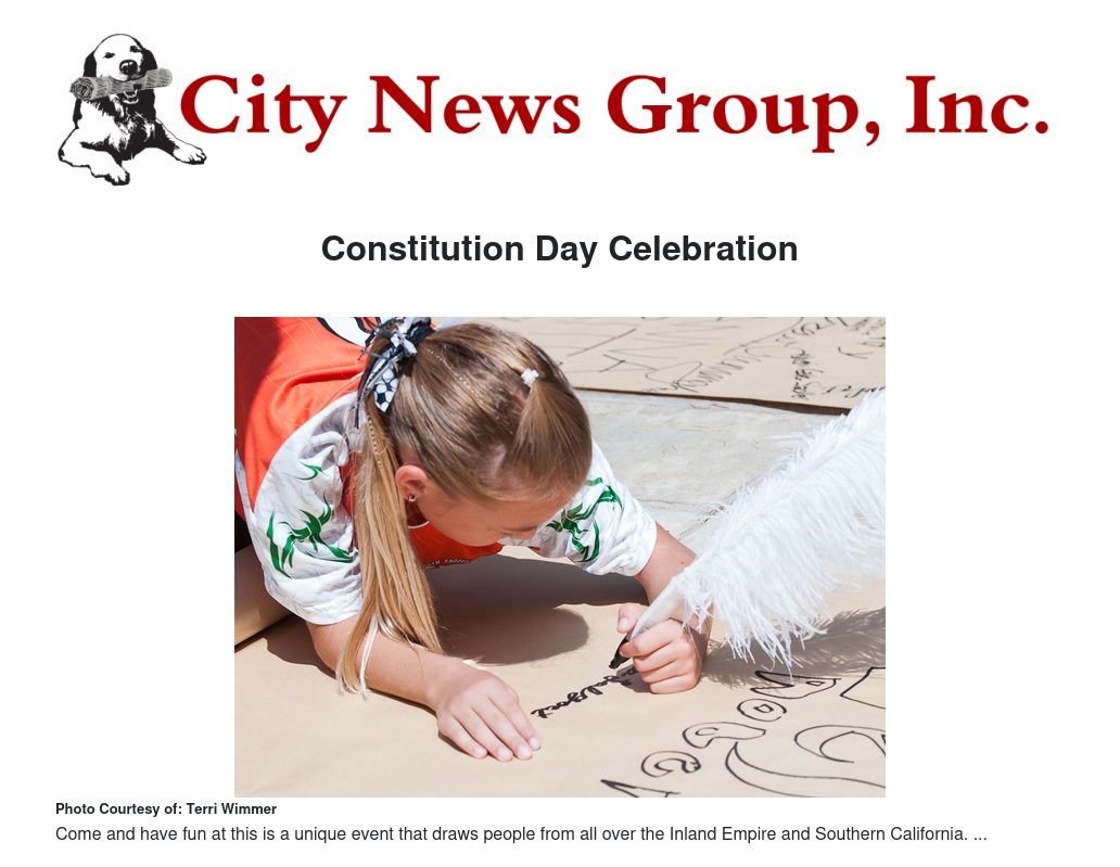 Join the community for the fourth annual celebration of the signing of the U.S. Constitution, Saturday, Sept 13 from 11 a.m. to 3 p.m. at the Lincoln Memorial Shrine, located at 125 W. Vine St. in Redlands. Admission is free.