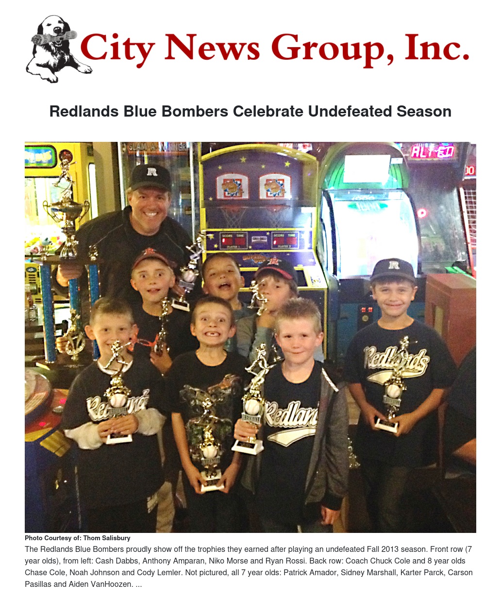 The Redlands Blue Bombers are one of 15 youth teams that make up the Redlands Baseball/Softball for Youth sports program. The program is currently taking registrations for the spring season at www.rby.org.