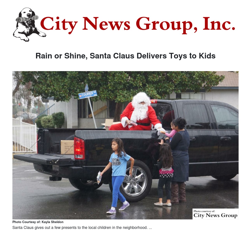 The community was embraced with holiday spirit at about 9:30 a.m. where the parade started at the corner of Post Street and Sun Avenue in Northern Redlands. Santa travelled throughout several blocks greeting a myriad of community parents and children. The parade ended at the corner of East Brockton Avenue and North Church Street.