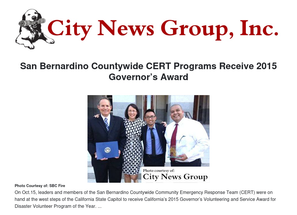 San Bernardino Countywide CERT Programs Receive 2015 Governor’s Award