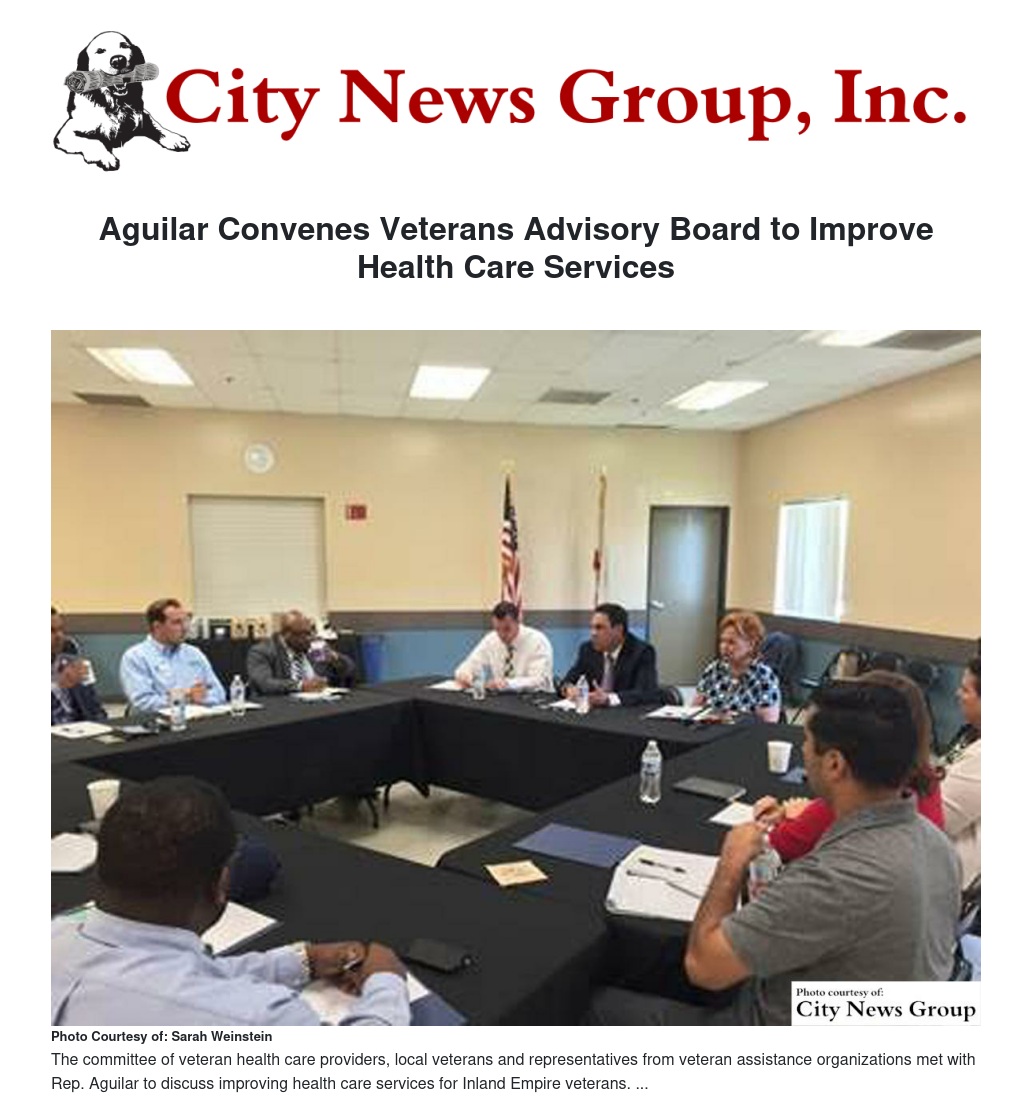 Aguilar Convenes Veterans Advisory Board to Improve Health Care Services