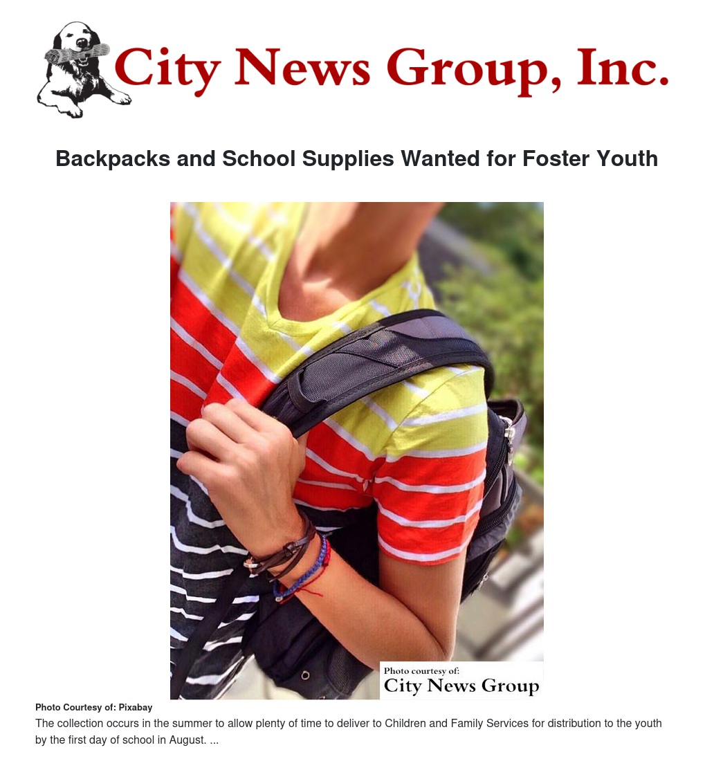 Backpacks and School Supplies Wanted for Foster Youth by Julia Nunez - City News Group, Inc.