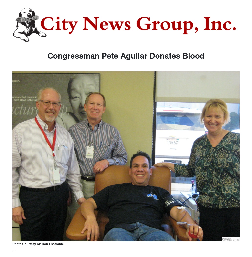 Congressman Pete Aguilar Donates Blood