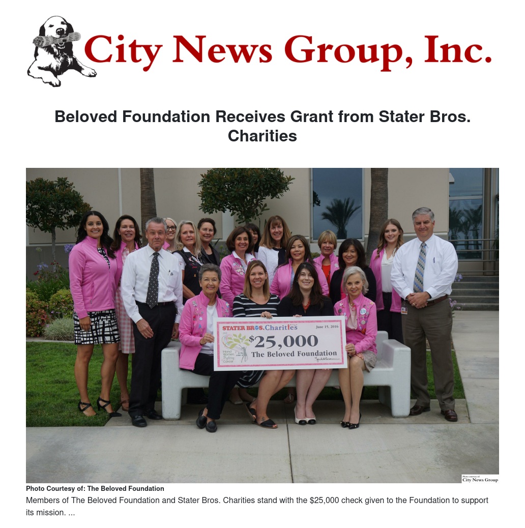 The Beloved Foundation is extremely grateful to the Stater Bros. Charities for the grant, and looks forward to putting it to good use right away.