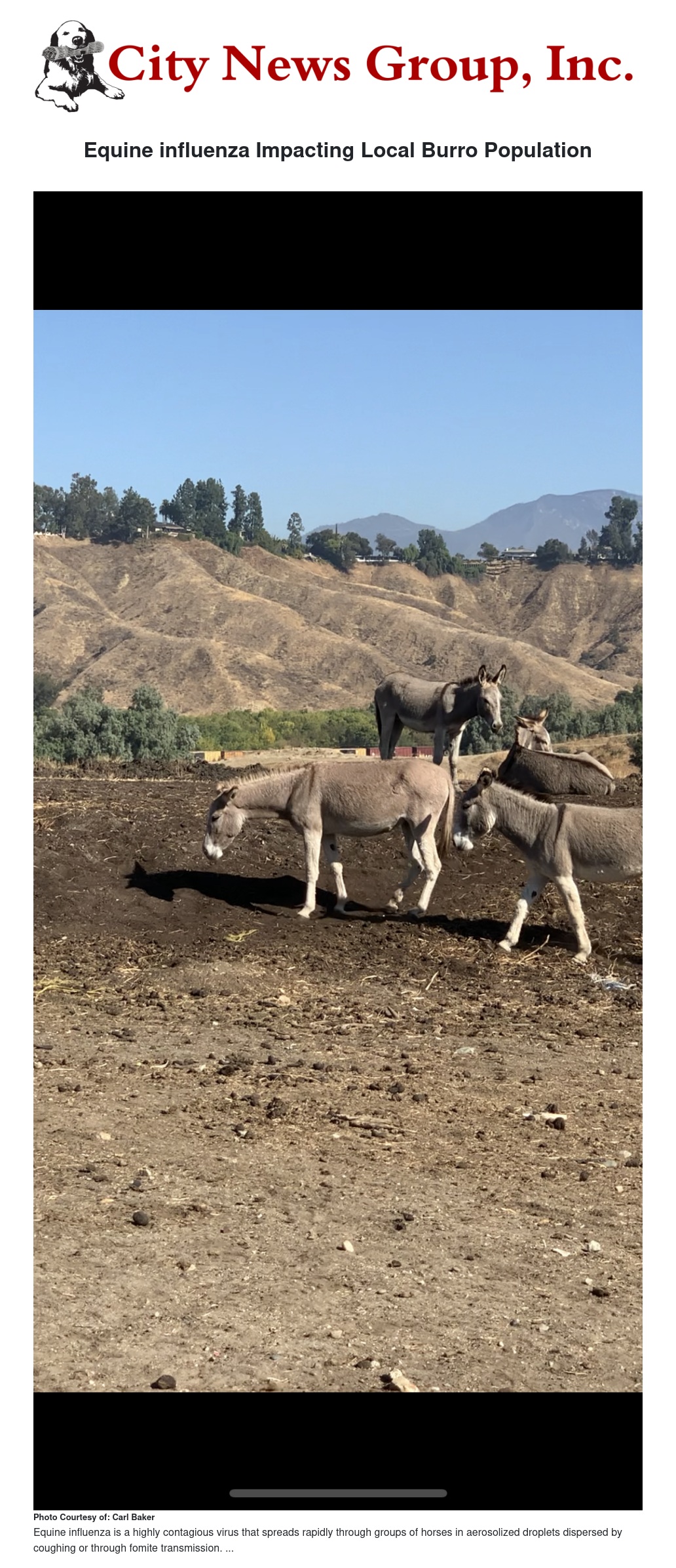 An equine influenza outbreak is impacting the local burro populations in Redlands and surrounding areas.
