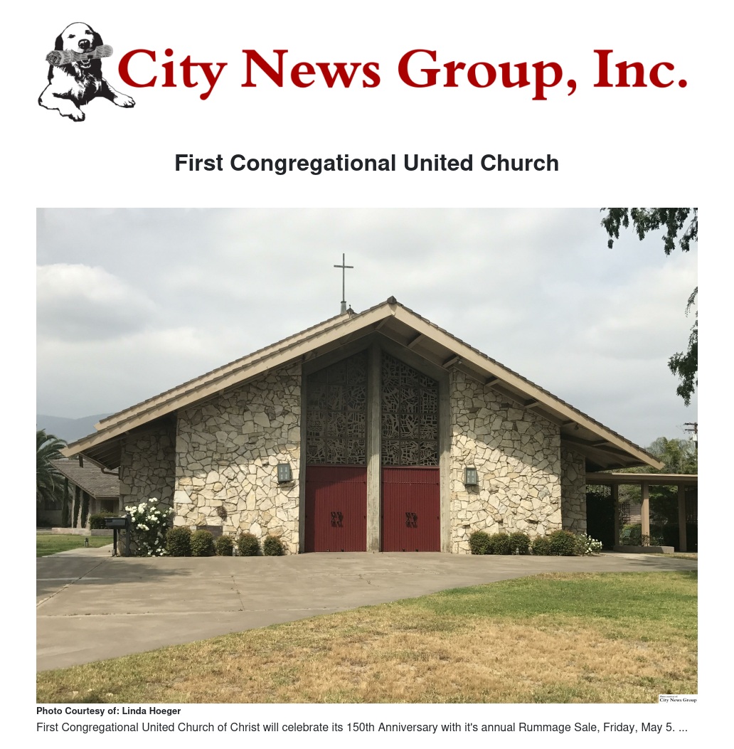 ALL (Minus MV)>> First Congregational United Church of Christ of San Bernardino is celebrating the 150th Anniversary of the founding of their congregation in 1867, and also the 50th anniversary of their famously enormous Rummage Sale.