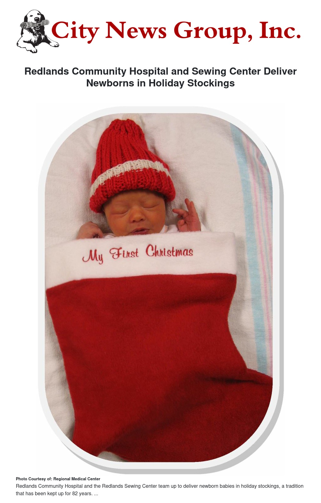 An 82-year-old tradition continued this year when Redlands' Sewing Center stitched together oversized holiday stockings to ensure that every child born at Redlands Community Hospital in December goes home swaddled in a unique holiday gift to commemorate their seasonal birth.