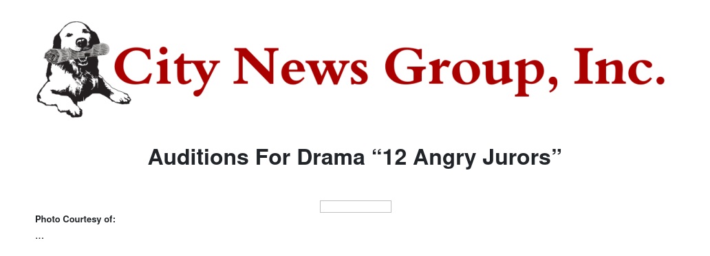 Open auditions for the drama “12 Angry Jurors,” by Reginald Rose and directed by Wayne Scott, will be Thursday, Oct. 29 from 6 p.m. to 9 p.m. at LifeHouse Theater, 1135 N. Church Street, Redlands.