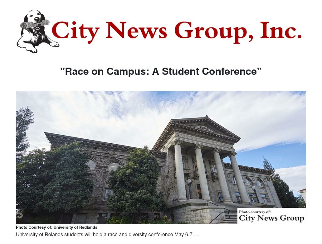 REDLANDS—(April 20, 2016) To continue the conversation about race and diversity at campuses across the country, student activists in the Johnston Center for Integrative Studies at the University of Redlands (UCR) will host “Race on Campus: A Student Conference” May 6-7.